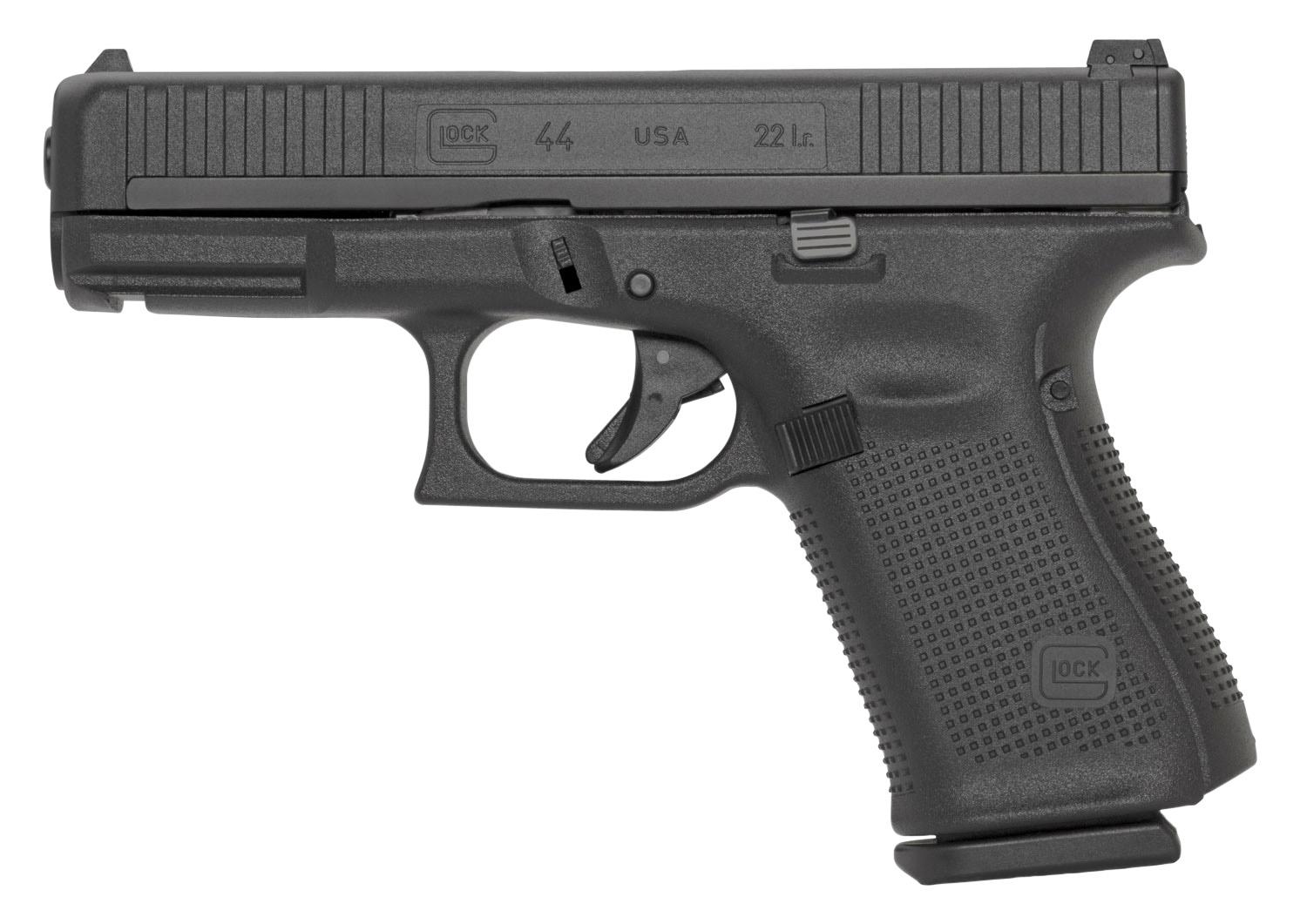 The Glock 44 has an innovative design of the hybrid steel-polymer slide chambered in .22 caliber round which provides a lightweight and low recoil functionality for optimal control. Featuring Glock's Safe Action system; grip angle; slide stop lever and the magazine catch are easily operated with the shooting hand. The advanced surface treatment of the slide results in optimal hardness by considerably reducing wear and tear and it makes it corrosion resistant. The matte surface minimizes light reflection. Its extractor serves as a loaded chamber indicator. Includes 2 load assist magazines.