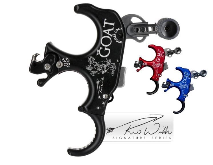 The Reo Wilde signature series Goat combines two of the most popular methods of activation into one unprecedented release. It can be used as a thumb activated trigger release or hinge release in three easy steps, taking about 30 seconds to switch. The Goat as a hinge comes standard with a medium click installed and a no click option can be achieved by flipping the sear 180 degrees, and a fast click can be purchased separately. Treat yourself to one of the most innovative releases to ever hit the market.