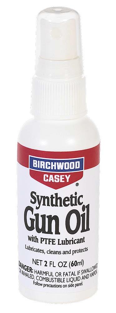 Birchwood Casey's Gun Oil is a superior lubricant for all climates. It contains Teflon lubricant to greatly reduce the friction between mating surfaces and will not gum-up or lose its viscosity under extreme temperature. The natural solvency of Synthetic Gun Oil cleans as it oils while its low evaporation rate assures protection against rust.