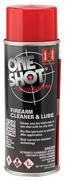 One Shot original formula Gun Cleaner and Lube is a one step gun cleaner and lubricant with multiple advantages over two and three step cleaners and lubricants. One Shot DynaGlide Dry film technology has 6 times more than the load carrying capacity of the US Military and NATO required specifications. Barrel leading is significantly reduced, and easy to remove with the micro penetrating solvents. The high load carrying capacity reduces heat buildup and wear and tear of compressed moving parts. The dry film advantages do more than simply reduce gunk and residue build up that wet lubricants contribute to, including all weather and temperature extremes, they also prevent corrosion and rust conditions often set in motion by wet alternative lubricants and corrosion inhibitors. The two separate corrosion inhibitor formulas added to One Shot DynaGlide dry film are two times more (200hr.) than the minimum salt spray required specifications of the US and NATO Military. One Shot Gun Cleaner and Lube is a true one step cleaner & lube, that cleans/removes Cosmoline, Greases, oils, lead, conditions new metals, and lubricates in One Shot. Net weight 10 oz., 14 fluid ounces.