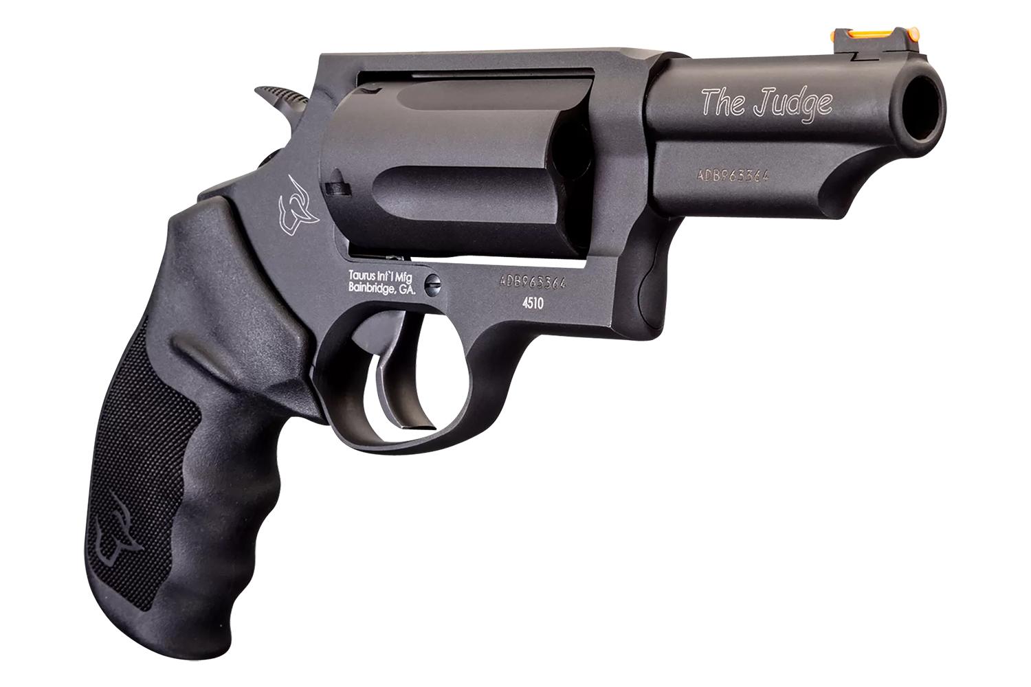 The Taurus Judge is named for the many judges who carry it into the courtroom for their protection, and it is capable of chambering both 410 gauge with 2.5" shotshell and the 45 Colt. This combo is ideal for short distances where most altercations occur and for longer distances with the 45 Colt ammo. This model is fully customized with fixed rear sights, fiber optic front sights and finger grooved rubber grip.