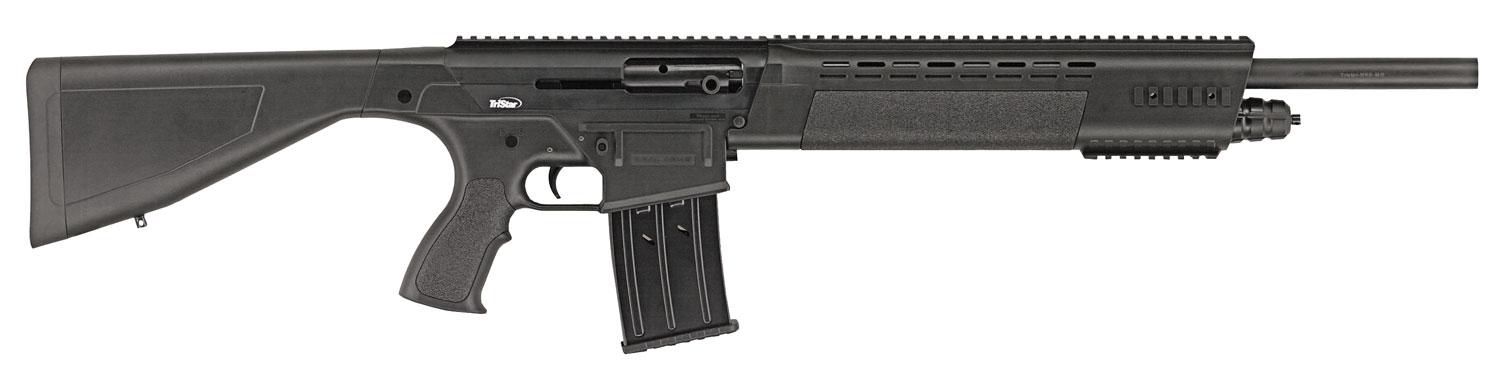 The KRX Tactical is a gas operated, box-fed, with true AR-Style controls shotgun. Its removable choke system uses Beretta/Benelli Mobil Threads and includes an extended tactical choke. The KRX also features highly durable injection molded stock and forearm; full-length picatinny rail, removable carrying handle and bridge front sight. The stock utilizes a rubber recoil pad and swivel studs. Two (5rd) magazines are included.