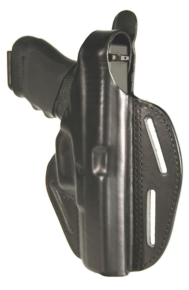 Constructed of premium leather, this molded three-slot holster comfortably contours to your body, providing exceptional concealment for your weapon. Its two-piece, wet-molded, double contour-stitched construction contributes to the holster s incredible durability. Reinforced thumb break for durability and ease of draw. Covered trigger guard for safety and security. Three-slot design allows for strong-side, behind-thehip, appendix, and cross-draw carry.