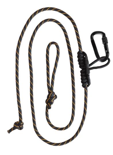 Constructed of strong braided nylon capable of supporting up to 300 pounds, this rope allows safe climbing when setting stands, safe lines, and other equipment in the trees. Quick-clip design with Prusik knot and lockable carabiner combo.