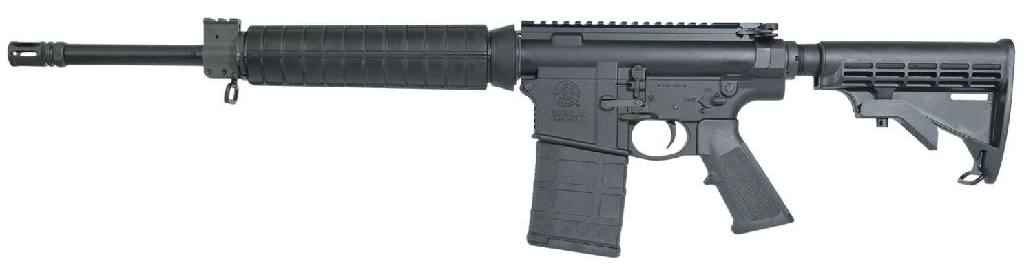 Smith & Wesson M&P10 Rifle is versatile, easily accessorized, and suitable for a wide variety of recreational, sport and professional shooting. The barrel features 5R rifling, an Amornite finish, and a flash suppressor. It has a chromed firing pin, ambidextrous safety selector, magazine, and bolt release. The six-position stock has a sling swivel. This Optic Ready model has a 16" barrel, Mid-Length handguard with a Picatinny-style rail, and a mid-length gas system.