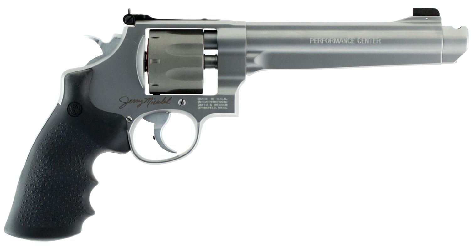 Performance Center guns originate from standard designs or are created from the ground up. From hand-cutting and fitting to fine tuning for precision, these firearms are top performers. Products from the Performance Center are the ultimate expression of old-world craftsmanship blended with modern technology. This model features a removable compensator, titanium cylinder, Jerry Miculek signature, chrome teardrop hammer, cylinder cut for moon clips and PC Tuned Action.