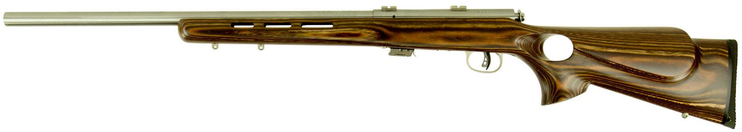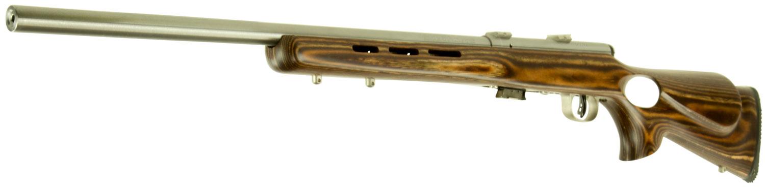 Mark II rimfire rifles add more fun to shooting than almost anything else for the money. From casual plinking to serious hunting, this versatile rifle can handle it all with match-grade accuracy. It's everything you want in a bolt-action 22 repeater including a long-range, heavy barrel for precision. AccuTrigger is a standard feature offering a user-adjustable trigger pull, so there's no need for a gunsmith to modify it. AccuTrigger also provides a crisp, clean trigger pull, which enhances accuracy. The detachable box magazine and stainless steel 21" carbon steel barrel are set in a thumbhole laminate stock with a beautiful satin wood-grain finish and a Monte Carlo-style comb.