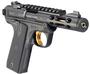 The Mark IV features a simple, one-button takedown for quick and easy field-stripping. Features a lightweight, ventilated, aerospace-grade aluminum receiver and a tensioned stainless steel barrel; contoured ejection port; an adjustable rear sight and a factory-installed Picatinny rail for easy mounting of optics; ambidextrous manual safety can be converted to left-side only with included washer; conveniently located push-button magazine release on the left side of the frame; Includes two magazines.