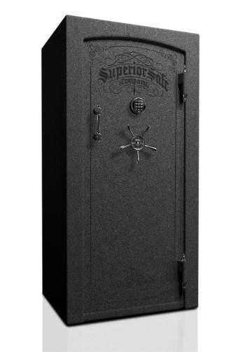Call for local delivery options and price. Superior Master 25. Textured Granite Paint with Black Chrome Hardware. SG Electronic Lock. Internal LED Lighting. External Dimensions: 30" W x 60.5" H x 26.5" D. Long Gun Capacity: 36. Weight: 790 lbs. Fire Rating: 1650 degree for 90 minutes. 10-Gauge Steel Walls. 4.5"-Thick Double Plate Steel Door. 3/16"- Outer Steel, Full 12-Gauge Inner 3/4" Reinforced Door Edge.