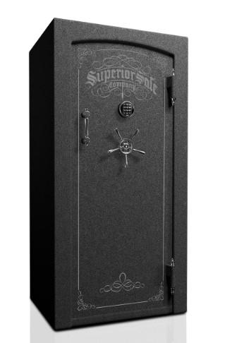 Call for local delivery options and price. Superior Master 25. Textured Granite Paint with Chrome Hardware. SG Electronic Lock. Internal LED Lighting. External Dimensions: 30" W x 60.5" H x 26.5" D. Long Gun Capacity: 36. Weight: 790 lbs. Fire Rating: 1650 degree for 90 minutes. 10-Gauge Steel Walls. 4.5"-Thick Double Plate Steel Door. 3/16"- Outer Steel, Full 12-Gauge Inner 3/4" Reinforced Door Edge.