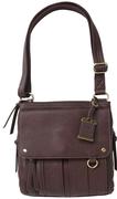 This medium cross body purse dimensions are 11" x 11" x 2" and has a chocolate brown finish.