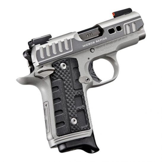 The MICRO 9 RAPIDE features performance enhancing features such as stepped cocking serrations, slide lightening cuts for faster lock time, Black KimPro finish and TiN coated barrel for extreme durability, flush fitting magwell, along with Stiplex front strap pattern, for positive grip.