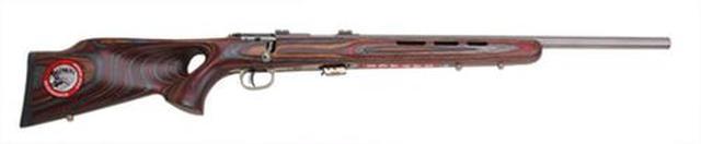 From casual plinking to serious hunting, the versatile rimfire Savage Mark II BTVS Rifle can handle it all. This bolt action Mark II BTVS Rifle is presented with a beautiful stainless steel barrel and laminate walnut stock, and features AccuTrigger, thumb safety and detachable box magazine