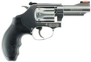 Smith & Wesson J-Frame revolver is designed to fire a full power round and is reliable. It is a small-frame, defense revolver. The Model 63 is built on a stainless-steel J-frame and is compact enough for comfortable carry and perfectly balanced for easy shot placement. This model has a stainless steel frame, 3" barrel, and cylinder, exposed hammer, and Hi-Viz fiber optic red front sight and an adjustable rear.