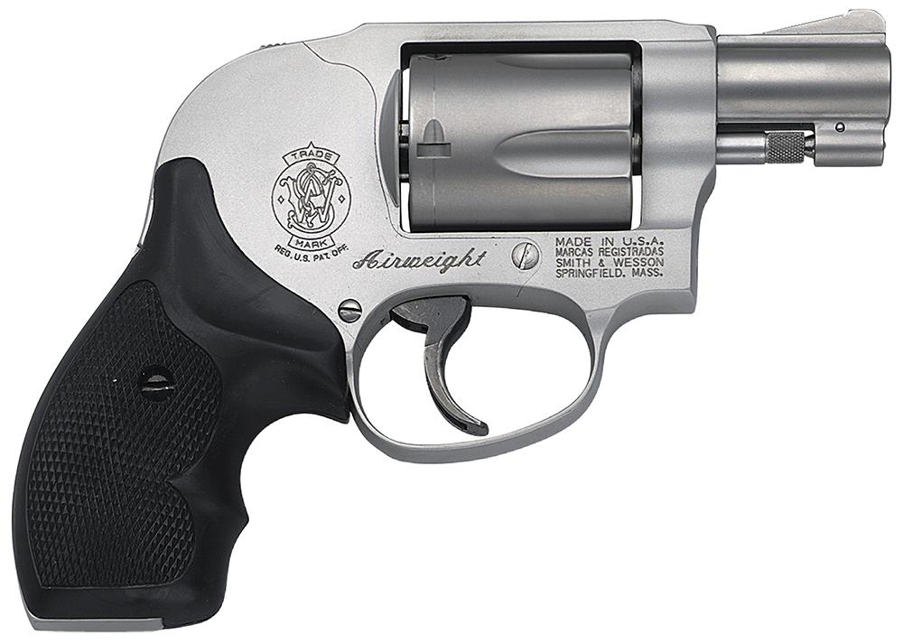 Smith & Wesson J-Frame revolver is designed to fire a full power round and is as simple and easy to use as it is reliable. The Model 638 is an innovation of the Model 38 Bodyguard Airweight which integrates time-tested features of the original with modern advancements. This model has an aluminum alloy frame with a matte sliver finish, stainless steel barrel and cylinder, integral front and fixed rear sights, and an external hammer. It also has black grip.