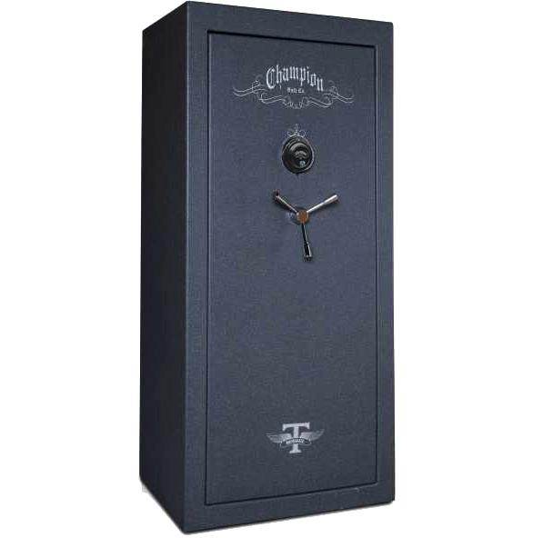 Call for local delivery price and options. Fire Rating: 1200 degrees - 60 minutes Dimensions: 28" W x 60.5" H x 22.5" D Gun Capacity: 24, Granite Textured Paint. Weight: 490 lbs. dial combination lock. 12-Gauge Steel Body 4-1/4-Thick Double Plate Steel Door 12-Gauge Outer Steel, Full 14-Gauge Inner.7/16 Reinforced Door Edge. Three-Spoke Handle