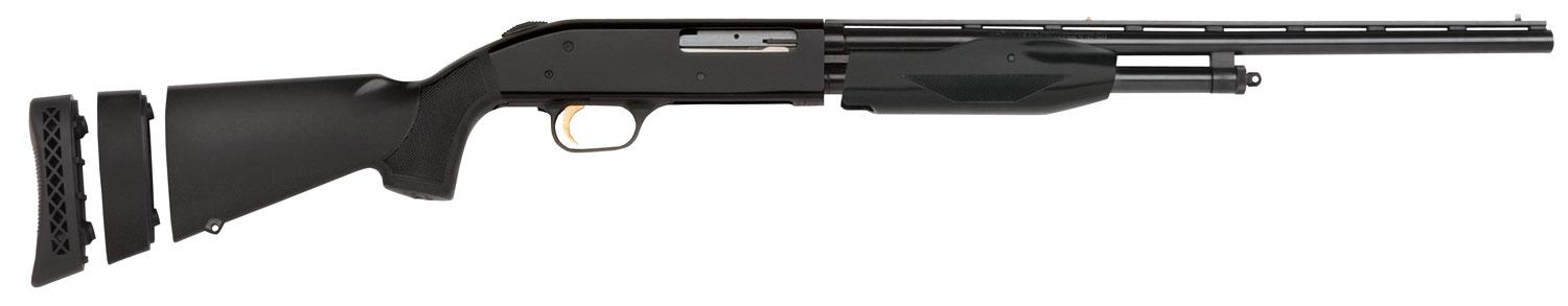 Mossberg's 510 Mini is an all-purpose shotgun with reduced dimensions and a lighter weight for more enjoyable shooting experience for young hunters. The Super Bantam has an 18.5" vent-rib barrel and an adjustable stock with a 10.25" LOP which can be extended by an inch. Its EZ-Reach forearm is located closer to the shooter for easier cycling operation. This field model has a black synthetic stock and a blued metal finish with dual-bead sights. It includes a fixed Modified bore.