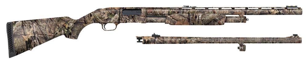 The Mossberg 500 Combo Turkey/Deer combo comes with a 24" 12 gauge 3" vent rib barrel with XX-Full choke for turkey hunting even at the longest distances. It also has a 24" 3" fluted fully rifled slug barrel with adjustable iron sights. This combo combines the legendary performance of the Mossberg 500 with two barrels that are specifically designed to be the best barrel possible for either hunting deer or turkey. The synthetic stock and forearm make for a lightweight super strong shotgun and with an all over Mossy Oak Break Up Country camo finish.