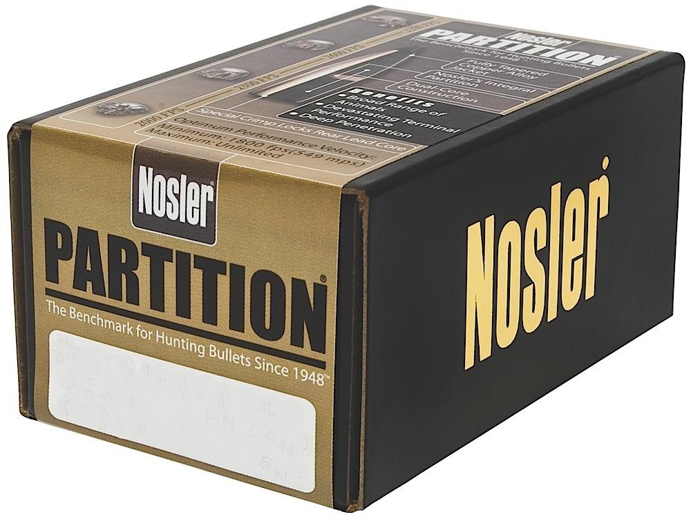 Every Partition bullet in the Nosler line is engineered with an optimum length, weight and ogive design for maximum in-flight and terminal performance. The fully tapered copper-alloy jacket ruptures instantly at the thin mouth, yet the gradual thickening along the bullet's axis controls expansion and curls the jacket uniformly outward at high and low velocities. Nosler's integral partition supports the expanded mushroom and retains the rear lead alloy core. Enclosed rear core retains more than half the original bullet weight for deep penetration. Special crimp locks add strength to resist deformation under the pressure of heavy magnums.