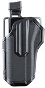 The Blackhawk's Omnivore multi-fit holster accommodates more than 150 styles of semi-automatic handguns. The active retention mechanism locks onto a proprietary rail attachment device, not the frame of the handgun for the non-light bearing model. Its instinctive thumb release disengages the locking mechanism from the rail attachment device when drawing the handgun.
