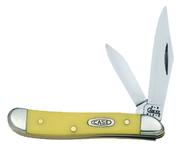 The smooth, yellow synthetic handles of this small Peanut folding knife are built to take abuse. At just 2-3/8" when closed, it is the perfect little pocket knife. The clip and spey blades are made of chrome vanadium steel, a special formula of alloyed cutlery steel for easier resharpening. Since 1889 every Case Knife is made with pride in the United States.