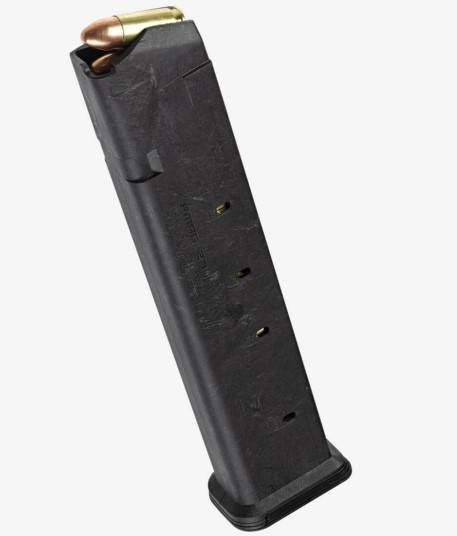 The fun (almost) never ends when you run the PMAG 27 GL9. It holds 27 rounds of 9mm without extensions and meets 170mm length requirements for most competition shooting. It provides the same features and rock-solid reliability as our other PMAGs for GLOCK-pattern, Ruger® RXM, and similar double-stack firearms. When empty, the follower locks the slide back in the open position and the PMAG drops freely from the mag well, both loaded and unloaded.