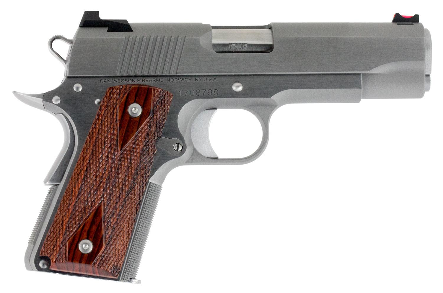 Dan Wesson uses the best components and finishes the industry has to offer creating the best possible 1911. The 1911 Pointman Carry is easily concealed while being incredibly comfortable to shoot. It is a fully stainless take on the CCO concept (Commander-length slide with an Officer frame). It has forged stainless frame and slide, fiber optic front with fixed rear sights, manual safety, and wood grip. This model has a 4.25" barrel chambered in 45ACP and a 7-round capacity.