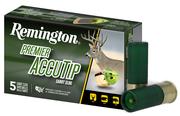 Guided by Remington's Power Port Tip, Premier AccuTip Sabot Slugs delivers a degree of accuracy and terminal performance unmatched. This masterpiece of aerodynamics consistently prints tiny 100-yard groups and transfers tremendous knockdown force to the farthest reaches of shotgun range. From 5 to 200 yards, it yields perfect mushrooms and over 95% weight retention thanks to its spiral nose cuts and high-strength cartridge brass jacket. The Premier AccuTip is designed for rifled barrels only and is the largest tipped slug you'll find anywhere.