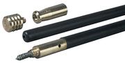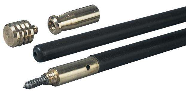 Extra-long 37 3/4” PVC rod. Underneath cleaning jag is a threaded female end which accepts ramrod attachments. Unscrew again to expose a ball/patch puller. 10/32 thread. For .50 cal.