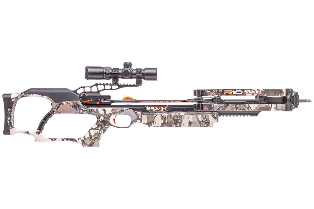 If running-and-gunning or hunting from tight quarters is your style, then the R10 is the crossbow for you. It’s the smallest Ravin ever made, measuring just 33” and tipping the scales at a scant 6.8 pounds. Don’t let the Ravin’s compact size fool you. The powerful R10 with HeliCoil™Technology generates 400 FPS with devastatingly accurate downrange precision.