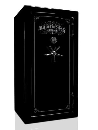 Call for local delivery options and price. Superior Regal 25 Gun Safe. Gloss Black Paint with Chrome Hardware. SG Electronic Lock. External Dimensions: 31" W x 60" H x 26.5" D. Long Gun Capacity: 36. Weight: 720 lbs. Fire Rating: 1500 degree for 75 minutes. 11-Gauge Steel Walls. 4.5"-Thick Double Plate Steel Door. 10-Gauge Outer Steel, Full 14-Gauge Inner 7/16" Reinforced Door Edge.