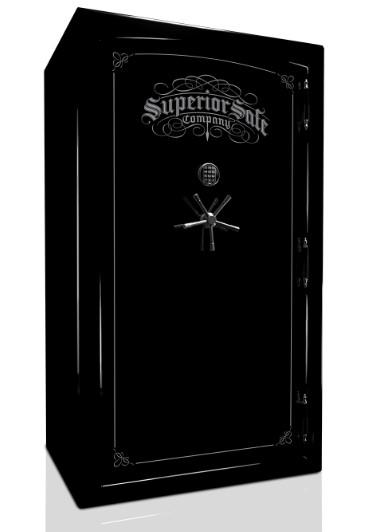 Call for local delivery options and price. Superior Regal 50 Gun Safe. Gloss Black Paint with Chrome Hardware. SG Electronic Lock. Internal LED Lighting. External Dimensions: 43" W x 72" H x 30.5" D. Long Gun Capacity: 52. Weight: 1075 lbs. Fire Rating: 1500 degree for 75 minutes. 11-Gauge Steel Walls. 4.5"-Thick Double Plate Steel Door. 10-Gauge Outer Steel, Full 14-Gauge Inner 7/16" Reinforced Door Edge.