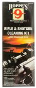 The Rifle/Shotgun cleaning kit includes No.9 solvent, lubricating oil, patches, rifle rod with rifle and shotgun adapter and slotted ends for rifles and shotguns.