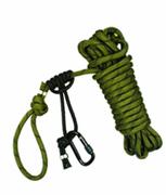 35 ft. rope with prusik knot and carabiner for controlled ascension and descension from hang-on, climber, and ladder stands.