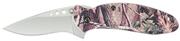 The camo Scallion features a 2 1/4 inch high-carbon stainless steel blade. Along with a Realtree hardwoods handle, this knife is a great contender for any outdoor adventure. This knife features a two-lock locking system, the liner lock keeps the blade locked open, while in use. The tip-lock keeps the blade closed for safety while in transport.