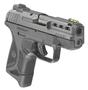 The Ruger Security-380 features a compact, rugged construction with a hardened alloy steel slide; one-piece, precision-machined fire control chassis and textured high-performance, glass-filled nylon grip frame with accessory rail. Lite Rack system; holds a full-sized magazine 10 or 15rds; drift-adjustable steel rear sight with a vertical edge and a bright, fiber optic front sight; Secure Action fire-control system that combines a protected internal hammer with a bladed-safety trigger, external manual safety; neutrally balanced sear with significant engagement and strong spring tension; hammer catch to help prevent the hammer from contacting the firing pin unless the trigger is pulled; easy takedown with no special tools or trigger pull required. Includes one 15rd and one 10rd magazine, magazine load assist and locking device.