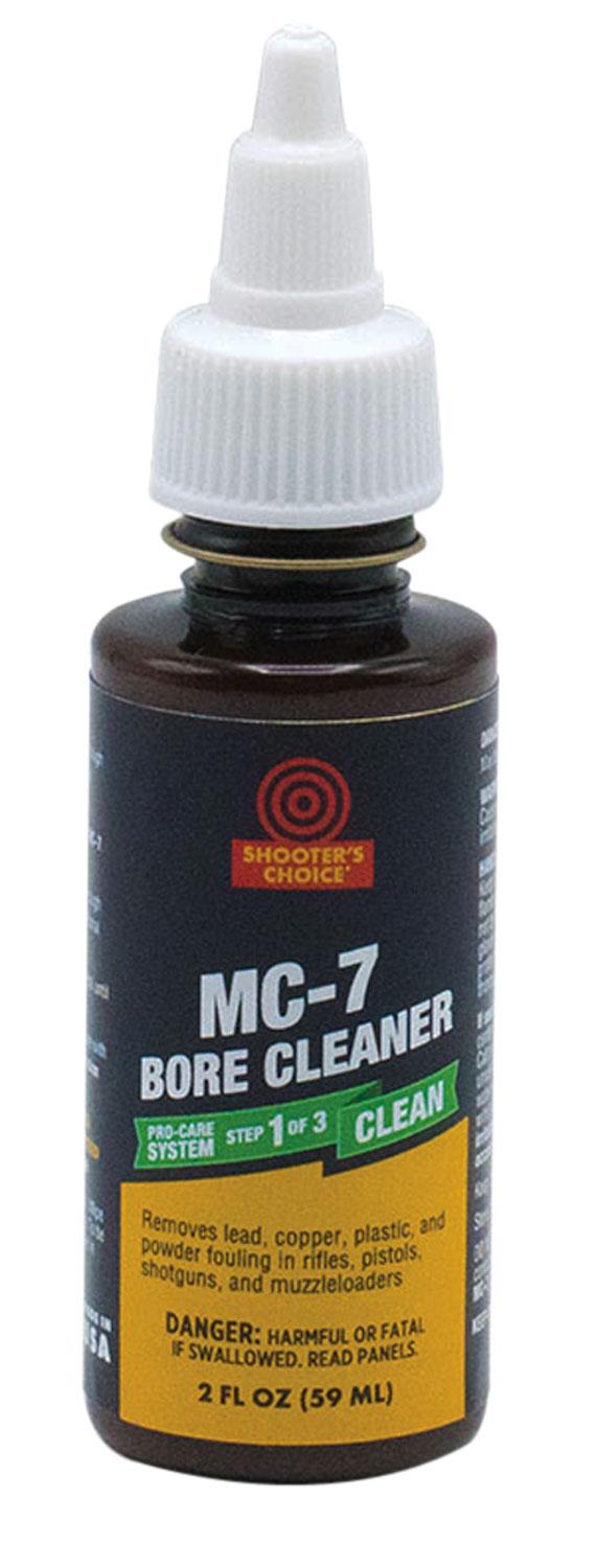 Shooters Choice MC 7 Bore cleaner and conditioner removes copper, lead, powder and carbon fouling in one step. It is non-abrasive and dissolves plastic wad residue in shotguns. It conditions bore to resist fouling and removes rust, corrosion, contains no ammonia, and it also lubricates.
