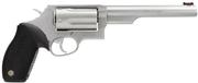 The Taurus Judge is named for the many judges who carry it into the courtroom for their protection, and it is capable of chambering both 410 gauge with 2-1/2" shotshell and the 45 Colt. This combo is ideal for short distances where most altercations occur and for longer distances with the 45 Colt ammo. This model is fully customized with fixed rear sights, fiber optic front sights, and Taurus Ribber Grips. The safety features on this model include the Taurus Security System and a transfer bar. This model has a 6.5" barrel with a stainless steel finish.