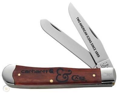 Carhartt and W.R.Case & Sons Cutlery Company are teaming up to celebrate the collaboration between these two great American companies. This limited edition Smooth Chestnut Bone Trapper wit polished stainless steel blades and nickel silver bolsters will feature the companies' logos embellished on the mark side of the knife and the slogan 'For the Working Man' on the pile side. The clip blade will be embellished to proudly state 'Two American Icons Since 1889.' This Trapper will be limited to 350 pieces, and each knife will have 'long tail C' serialization on the bolster. As with all natural material color and texture may vary.