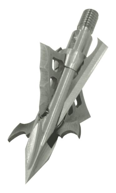 The Muzzy Trocar HB-Ti takes the potential for destruction to a new level thanks to a streamlined titanium ferrule, .050-inch-thick one-piece single-bevel serrated fixed blade edge and a pair of expandable .039-inch-thick wing blades to maximize damage.