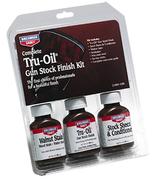 Tru-Oil penetrates deeply and forms a tough, clear, hard finish that protects and enhances the beauty of fine woods. This Kit includes: 3 oz. Tru-Oil gun stock finish, 3 oz. walnut stain, 3 oz. stock sheen and conditioner, fine, medium and coarse papers, 00 steel wool pads, service and polish cloths.