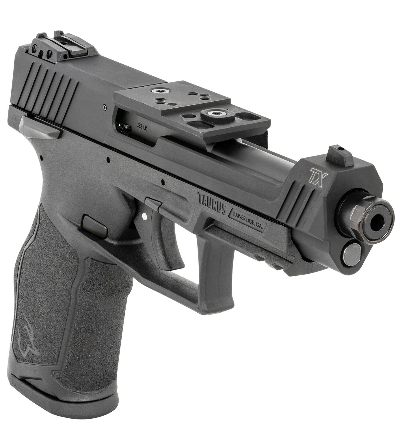The TX 22 Competition custom-tuned mod of Taurus' award-winning polymer sporting pistol. Thie full-size, semi-auto rimfire is re-engineered to meet your most rigorous performance demands. The upgraded, red dot optics-ready slide, Picatinny rail and 5.40" threaded Bull Barrel assembly brings match-grade accuracy and versatility to any shooting discipline.The TaurusTX 22 Competition pistol comes suppressor ready. Includes three magazines.