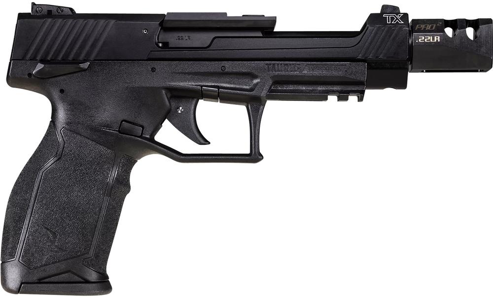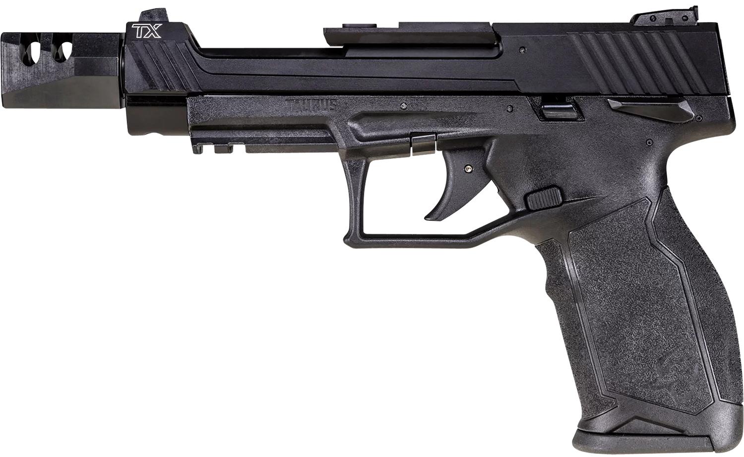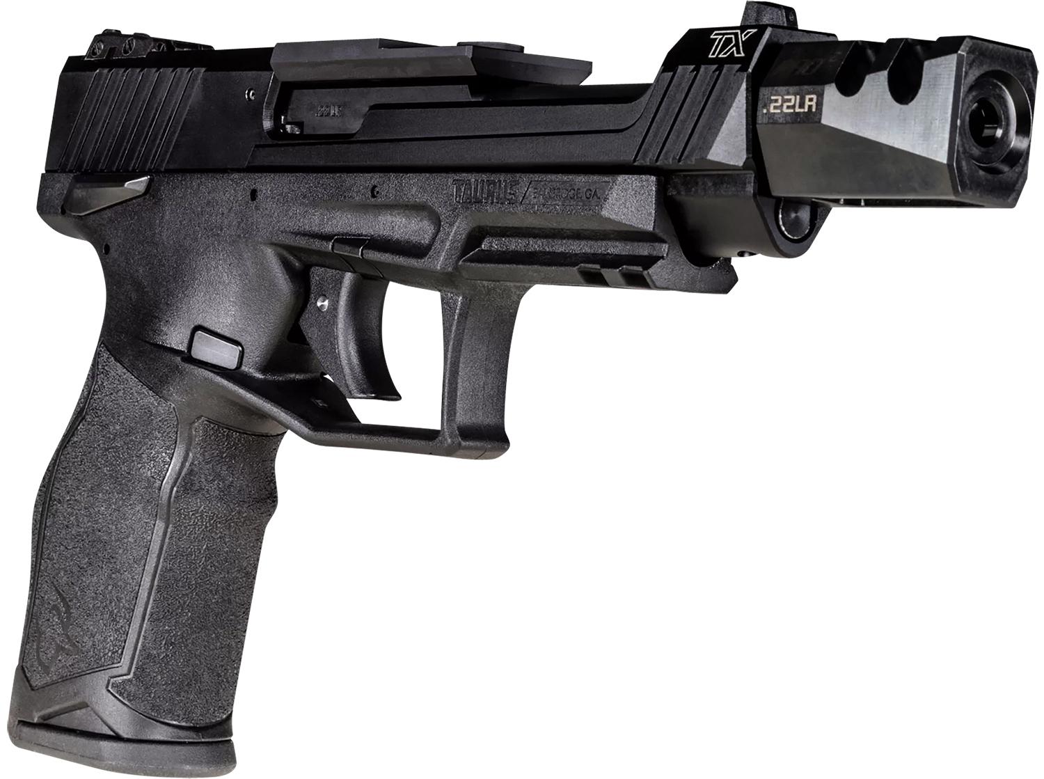 The TX22 Competition SCR (Steel Challenge Ready) is a Target model variant of the TX22 competition designed specifically to compete in Steel Challenge. The TX22 Competition SCR builds on the original TaurusTX 22 Competition features precision engineered slide and match-grade threaded, bull barrel; "skeletonized ' slide with a custom enlarged ejection port; TandemKross Eagles Talon aftermarket extractor; TandemKross Game Changer PRO squared compensator; red dot optic ready; custom polished feed ramp; two adapter plates each featuring two mounting patterns are included to interface the leading red dot sights. Includes three magazines.