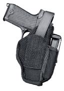 The Sidekick Hip Holster is a versatile holster with magazine pouch and removable belt clip. The velcro retaining strap secures magazine, yet provides easy access. It is constructed of tough, patented sidekick laminate of cordura nylon, waterproof closed cell foam padding and smooth nylon lining. The non-stretch retention strap and molded thumb break are anchored by one way velcro inside of the strap trap. Adjustment tool included.