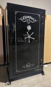 Call for local delivery options and price. Gloss Black Paint with Chrome Hardware. SG Electronic Lock. External Dimensions: 34" W x 60" H x 24.5" D. Long Gun Capacity: 32. Weight: 650 lbs. Fire Rating: 1200 degree for 75 minutes. 12-Gauge Steel Walls. 4"-Thick Double Plate Steel Door. 12-Gauge Outer Steel, Full 14-Gauge Inner 7/16" Reinforced Door Edge.