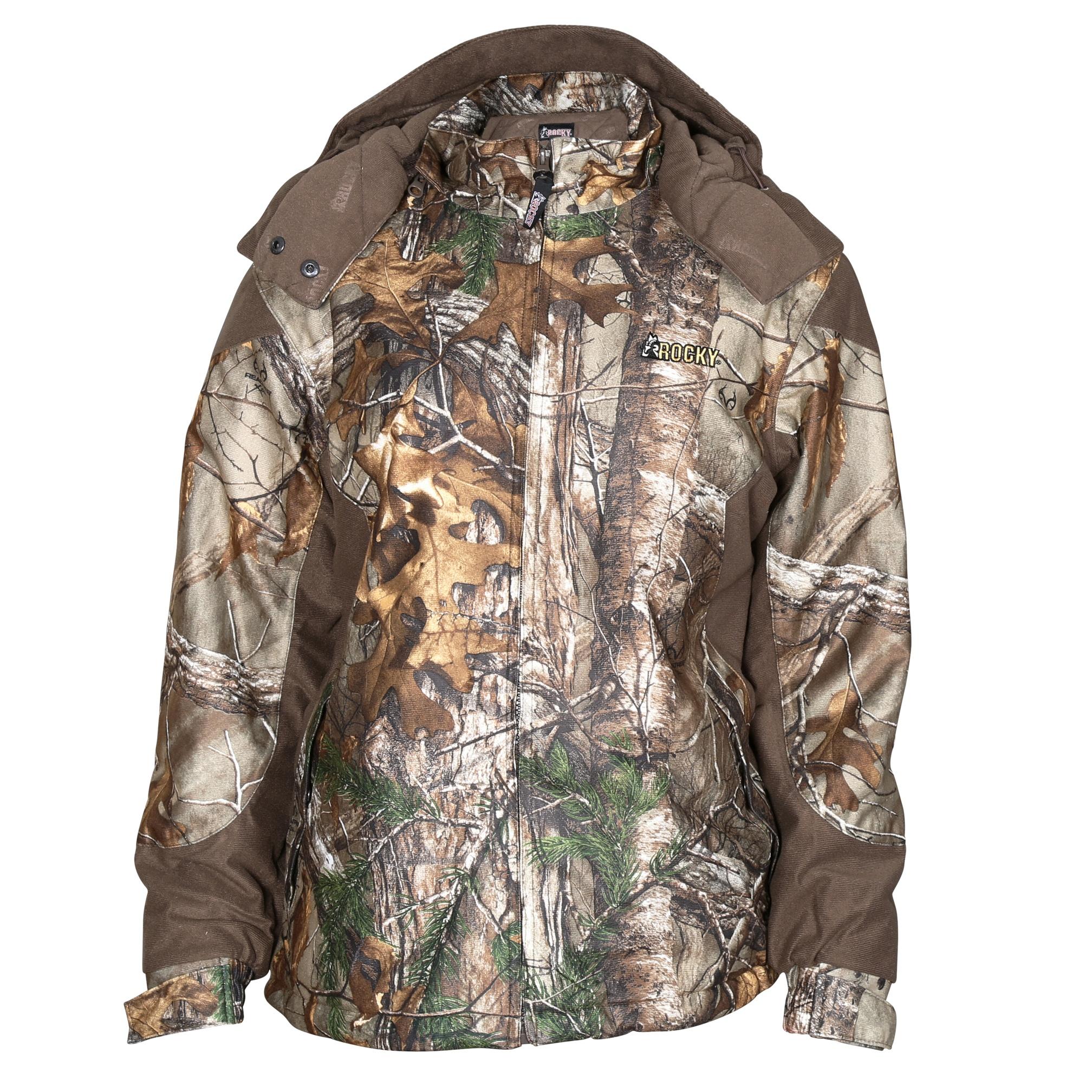 The Rocky Women's Prohunter Waterproof Insulated Parka is outfitted top to bottom in Realtree APX camouflage. Its FemFit tailoring is designed and engineered perfectly for women who like to hunt or spend time outdoors. Guaranteed Rocky Waterproof construction. Front zipper with storm flap. FemFit tailoring designed and engineered specifically for women. Poly fill insulation. Drawcord waist. Adjustable cuffs. Inside security and two slash pockets. Removable zip off hood.