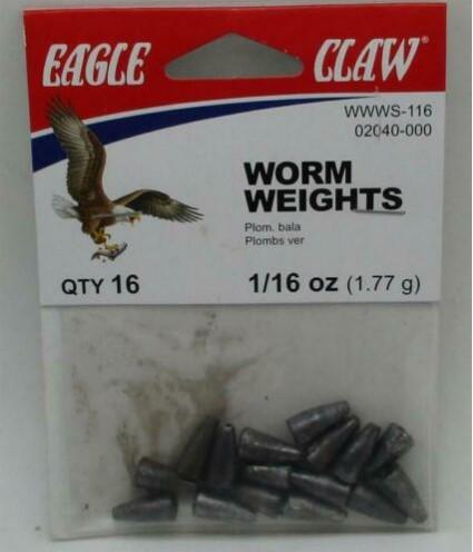 Eagle Claw 16 count package 1/16th oz worm weight sinker.