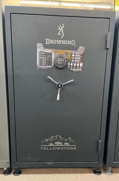 Call for delivery options and pricing. Appreciate the straightforward security of a Yellowstone® 40 safe, complete with a Quick Access Barrel Rack, convenient felt shelving, Force Deflector Locking System, plus a 12-gauge steel body and 10-gauge partial inner plate. Black Diamond Textured Paint. With an electronic lock. Grab and go easily, and enjoy peace of mind while you’re out. Dimensions 24.5X58X36. Weight 563 pounds.